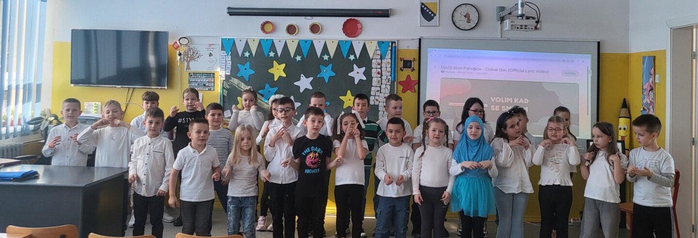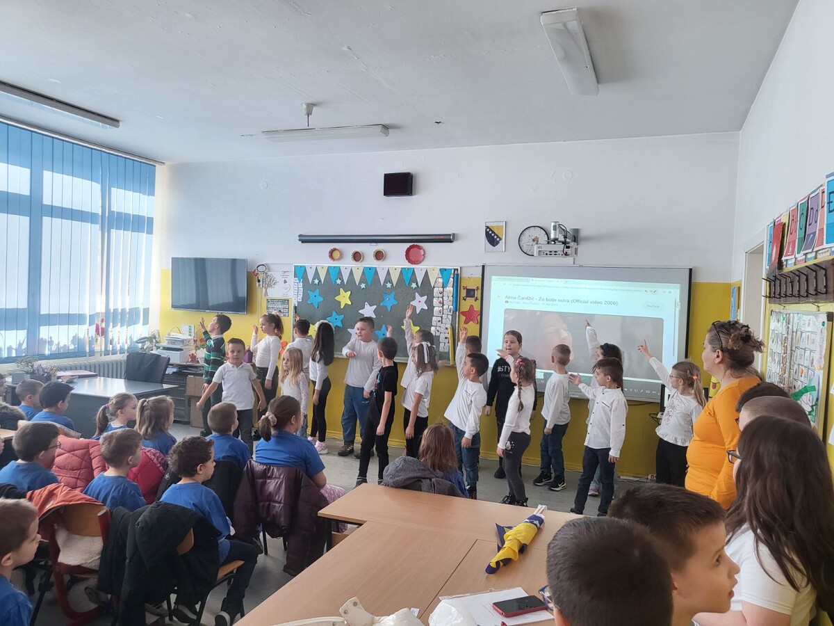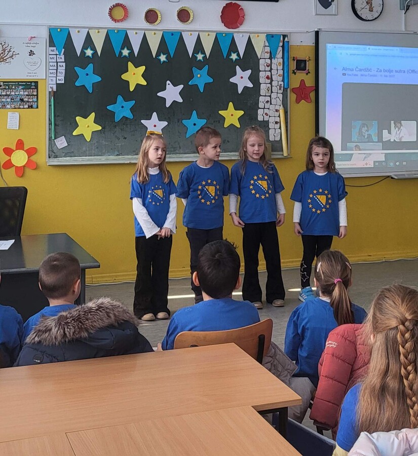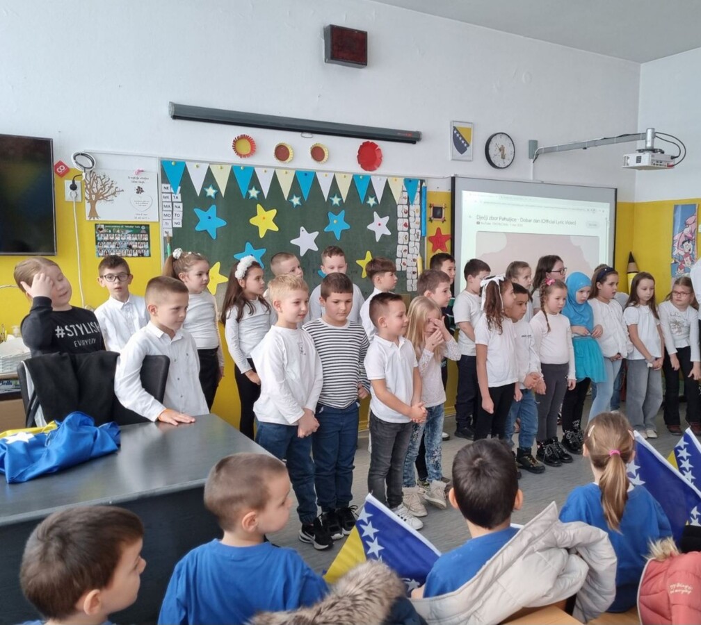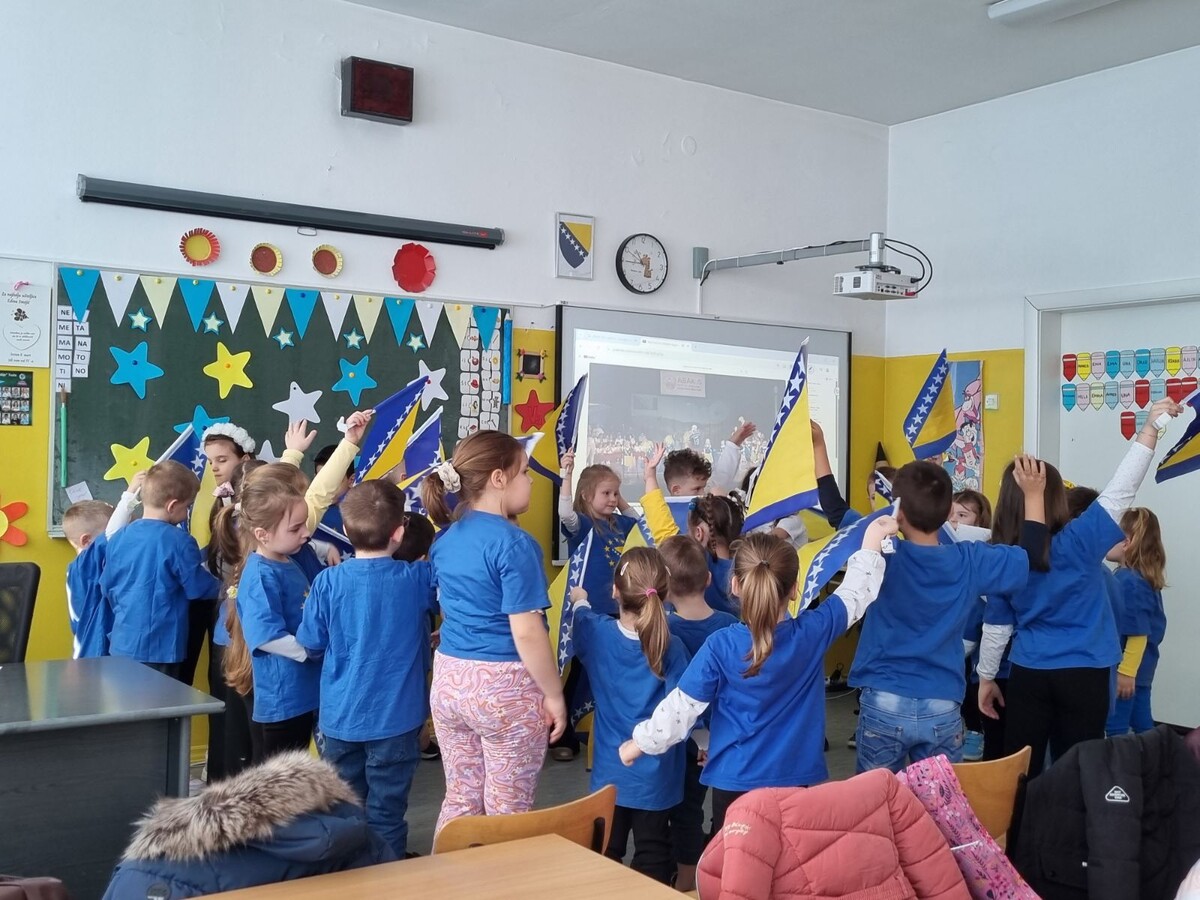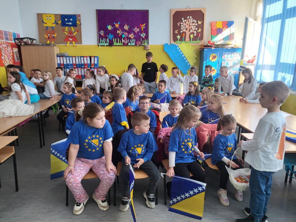 Učenici Ia Osnovne škole " Miladije" su zajedno sa drugaricama i drugarima iz obdaništa " Ciciban" svečano obilježili Dan nezavisnosti Bosne i Hercegovine.