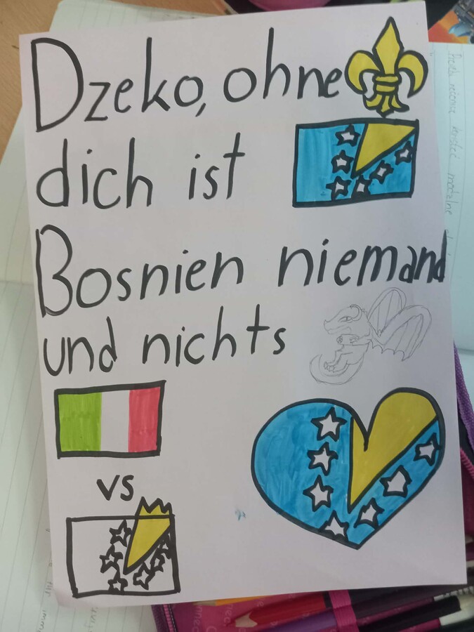 Učenici naše škole od 7. do 9 razreda su na časovima njemačkog jezika pisali poruke zahvalnosti našim fudbalerima, koji su nas učinili sretnim i ponosnim plasirajući se na Svjetsko prvenstvo u fudbalu 2026. godine.
